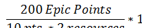 10 points is the average points per resource (I hate that word) per sprint. I’m assuming that they have standardized sprints for all teams in the organization. 2 is the number of team members (much better description) that will be working on this epic.